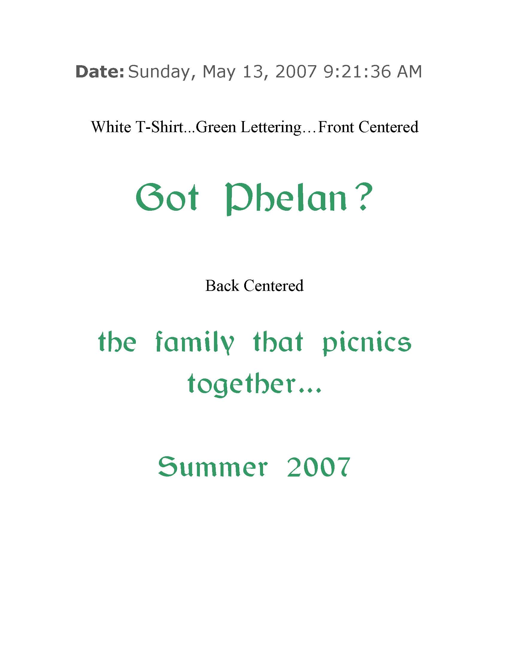 Ok, Phelan Family, this is it...the 2007 tee-shirt design